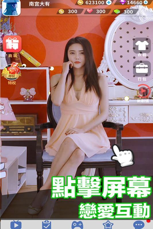 - 点击温柔的女角色会在屏幕里和你互动,你可以挑选衣服让她换装!