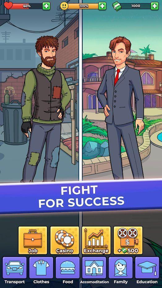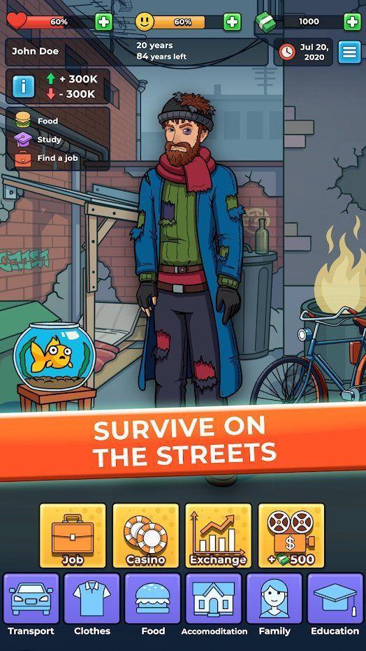 模拟经营 / 2020.01.21 更新流浪汉生活商业模拟游戏是一款模拟商业类的经营游戏,你将会化身成为一个流浪汉在城市的街头当中不断的乞讨,但是你十分不满足自己现在的生活,现在你将会遇到一次转变的机会,只要你能成功的把握,你将会从一个乞讨的流浪汉,变成一个完成瞩目的亿万富翁。