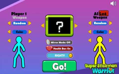 动作冒险 / 2021.02.21 更新超级火柴人格斗是一款非常好玩的动作闯关类游戏,玩家将控制火柴人进行战斗,能使用各种科幻武器和装备,每一场的对手也会使用这些来和你对决,命中对手的特效会产生各种颜色星星,代替被流失的血量。血条会直接标示在头顶,只有让绿色长条全部变为红色才能获胜。