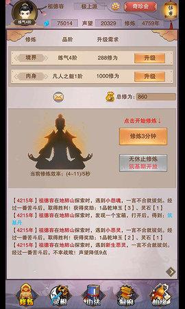 打坐静思快速提升境界,突破框架重新建立仙道修行的过程,还有劫数来袭修行之路并非一帆风顺,弹指可战斗随时感受恢弘战斗。多个方向可供玩家选择,可以成为力能拔山的仙将,也能成为逍遥四方的仙侠,这个修真者的世界将一直为你而开放!