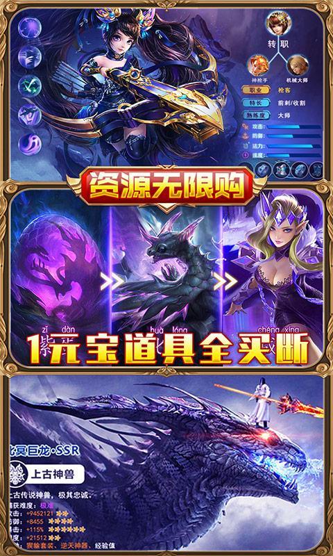 3、福利一、至臻特权:新增GM商城,海量进阶丹、装备碎片、狂化神石、金装打造石天天特价低至1元宝!
