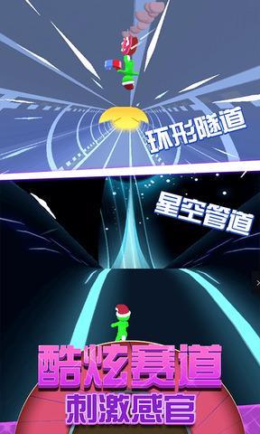 玩家在游戏中只需旋转滑动屏幕,控制玩家在障碍物之间跳跃,躲避以跑得更快。