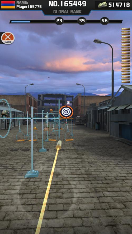 练习射击各种物品,瓶子,桶,还有各种会移动的物品,瞄准后射击。