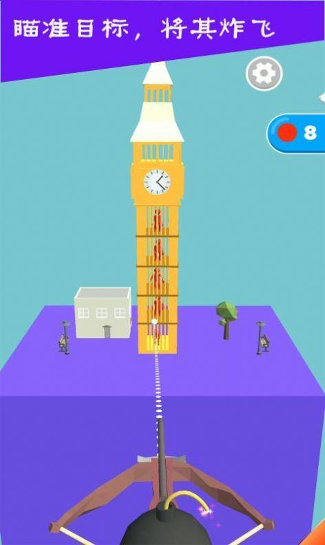 瞄准要射击的建筑,直接发射就能击碎建筑。看着摧毁的目标建筑,玩家能够放松自己的心情。