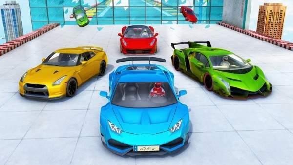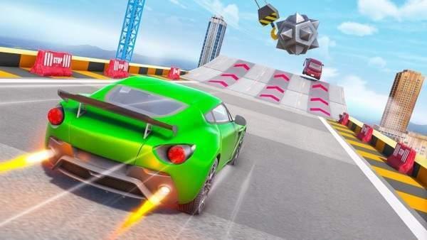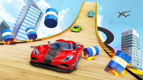 2、特技游戏是最好的免费驾驶游戏,具有不可能的赛车特技轨道和障碍。