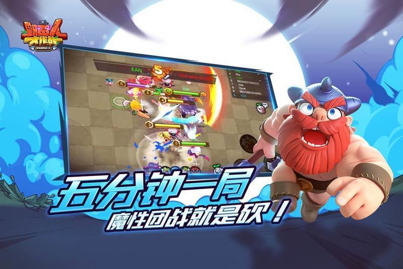 3v3v3,九人尬斧,技能随机,遇到就砍!独家群架玩法,尽在野蛮趣味竞技赛!可以发育打架,也可以偷菇阴人,可以当治愈系输出、也可以当暴力的辅助!这里没有最强的套路,只有最邪的打法!