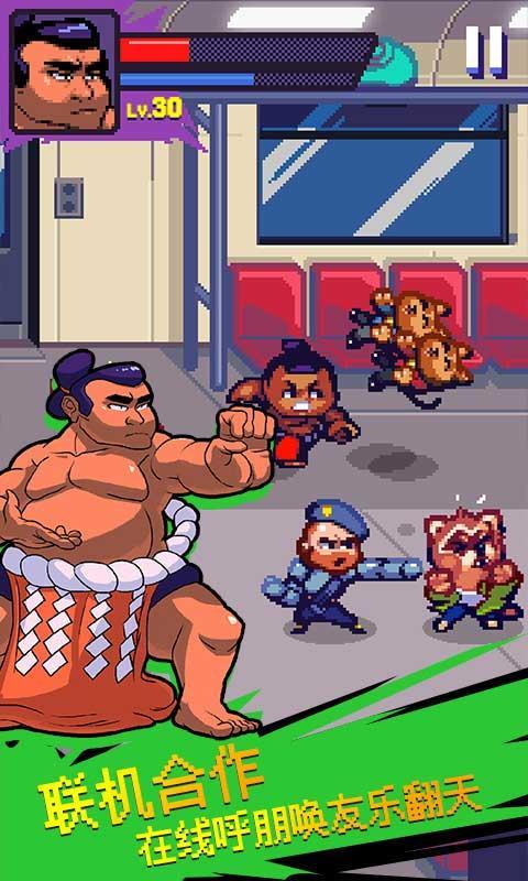 1、复古卡通像素游戏画风,在游戏中玩家可以解锁各式各样的角色人物开始刺激的格斗;