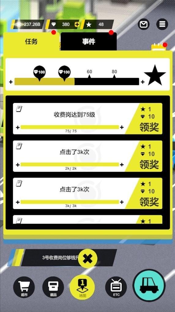 1、用丰厚的钻石聘请各路人士参与收费站的经营!收取汽车过路费赚取丰厚的金币和钻石!