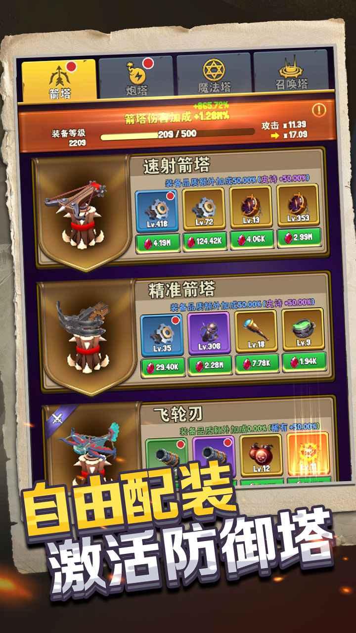3、搭配装备激活不同效果的防御塔,布置你的防御,合理搭配策略,让他们有来无回。