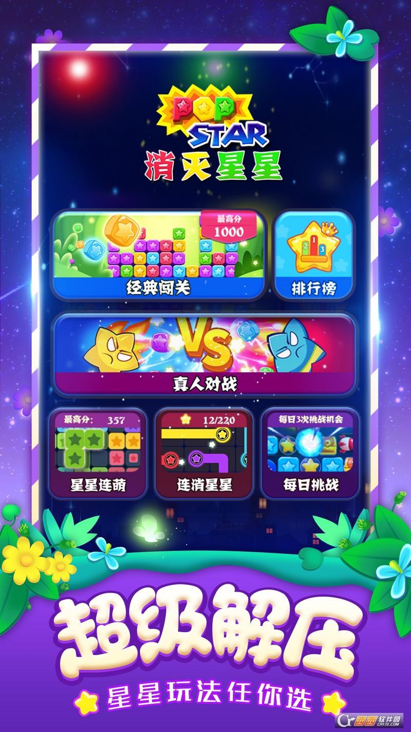 同时,消灭星星也是一个很锻炼脑力的游戏,和传统的消除类游戏不同,玩家不能再无脑的乱点通关,每一关都会要求达到一定的分数才能通关,否则乱点之后,分数不够,而且也没有可消除的对象就会GAME OVER了,玩家需要多个一起消除分数会在基础的分数上进行叠加,每一关都会要求达到一定的分数才能通关,暴爽快速连击挑战无上限耐玩关卡、丰富多样道具让你爽乐翻天体验、过关奖励福利超乎想象多多,开动你的敏捷大脑速速快来挑战自己,全球3亿真实玩家共同新纪录一并创造新高!小狗手游网为您带来消灭星星最新手机游戏安卓手游免费下载安装,喜欢的朋友现在就可以下载来玩哦~