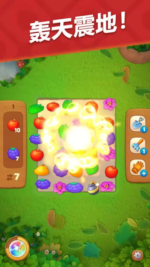 【炸药桶】7个相同图块相连即可合成一个,释放特效时可以进一半以上田地范围内的爆破消除。