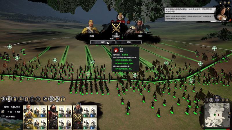 《Total War: THREE KINGDOMS》的回合制战役与即时战斗比之前结合得更为流畅。战斗中的表现会产生更大的影响,会影响英雄与你之间的关系,也会影响他们与其他角色之间的敌友关系。如今强援也是制胜关键所在,这也提供了一种全新的取胜元素。