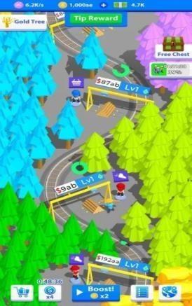1、超多的不同颜色的森林等你进行砍伐,在游戏中有着无比有趣的元素,你也可以铺设铁路,在游戏中努力的雇佣更多的工人为你砍伐树木。