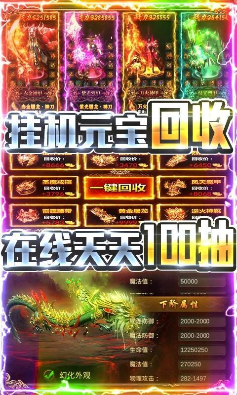 4、每日登录送海量极品材料,首充送【绝版·黄金屠龙刀】