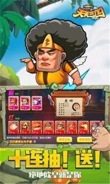 天天三国满v版是一款画风幽默的三国题材游戏,在这款游戏中玩家可以招募超多贱萌的三国人物,带领他们和自己一起去过关斩将,挑战三国中的大boss,同时在这款游戏中上线就送十连抽,海量福利随心领,喜欢这款游戏的小伙伴快来下载游戏吧。