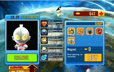 d、游戏中每一次挑战都需要消灭一波又一波的来犯之敌,通过杀死怪兽所获得的赏金可以用来升级奥特曼的技能并解锁新的奥特曼。