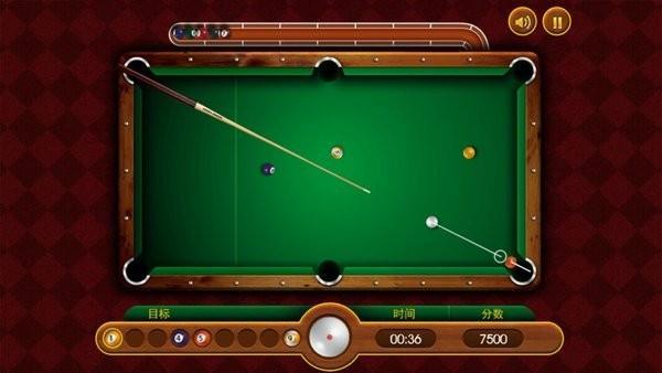 1、台球王者通过合理的瞄准来将对应球打入袋中。