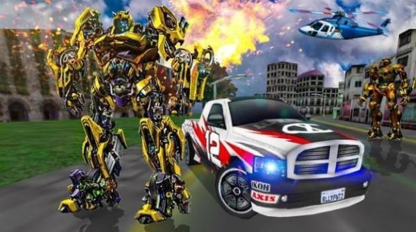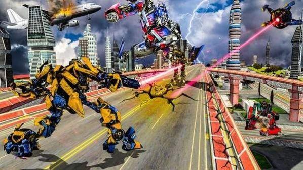 1、玩家在游戏中可以控制直升机变成机器人和来自外星的邪恶机器人进行战斗;