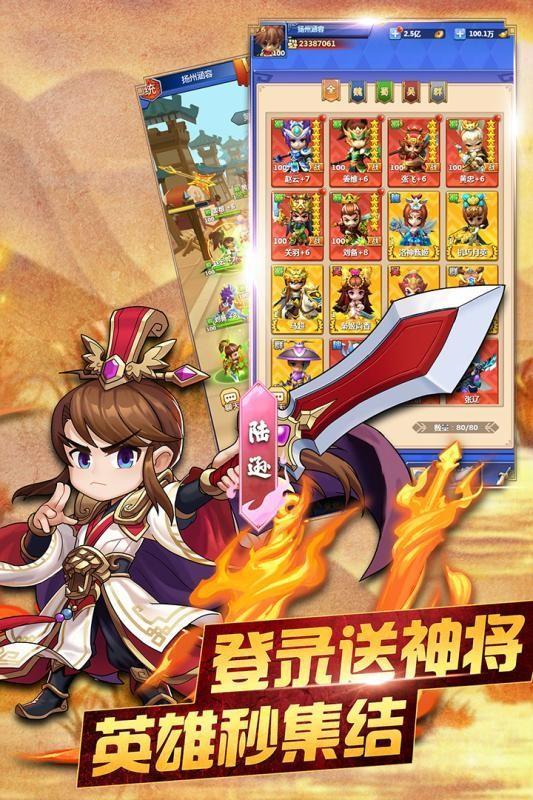1、采用了三国的背景,三国的英雄都将在这款中出现,化身为萌萌的Q英雄,每个武将都有自己的特殊能力。