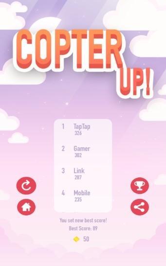 休闲益智 / 2021.04.01 更新Copter UP是一款十分有趣的直升机飞行手游,操纵你的直升机飞的更远吧,充满了挑战的模式,享受驾驶带给你的愉快吧。Copter UP轻松卡通的手游风格,感觉最热情的飞行冒险吧,惟独坚持才是你胜利的基础,充满趣味的冒险已经开始,和我一起飞行。