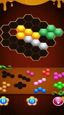 1、拖动随机浮现的浮现3个六角方块组合,拖动其里一个置于棋盘的空白处;