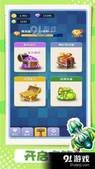 卡卡保皇亮点研究进化,提升科技,合成打造,升级铭文; 发动智商,打造属于你的最强阵容;