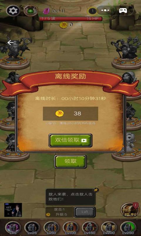 休闲挂机冒险。画风精美,玩法有趣,在中,玩家需要培养英雄,不断强化英雄技能,击败一波又一波的敌人袭击,为了保卫最后的城池而战!