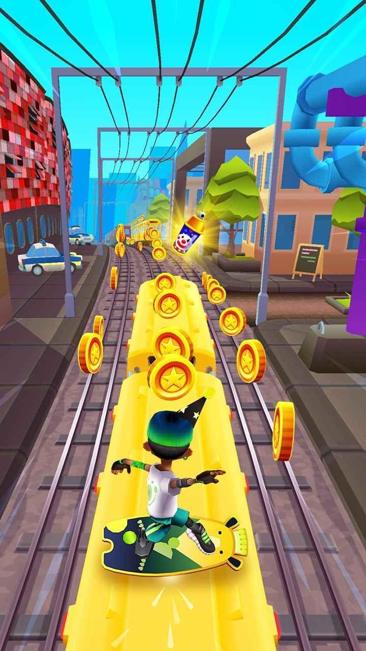 4、地铁跑酷采纳3D立体视角,动感十足,画面颜色冷艳,可玩性强。
