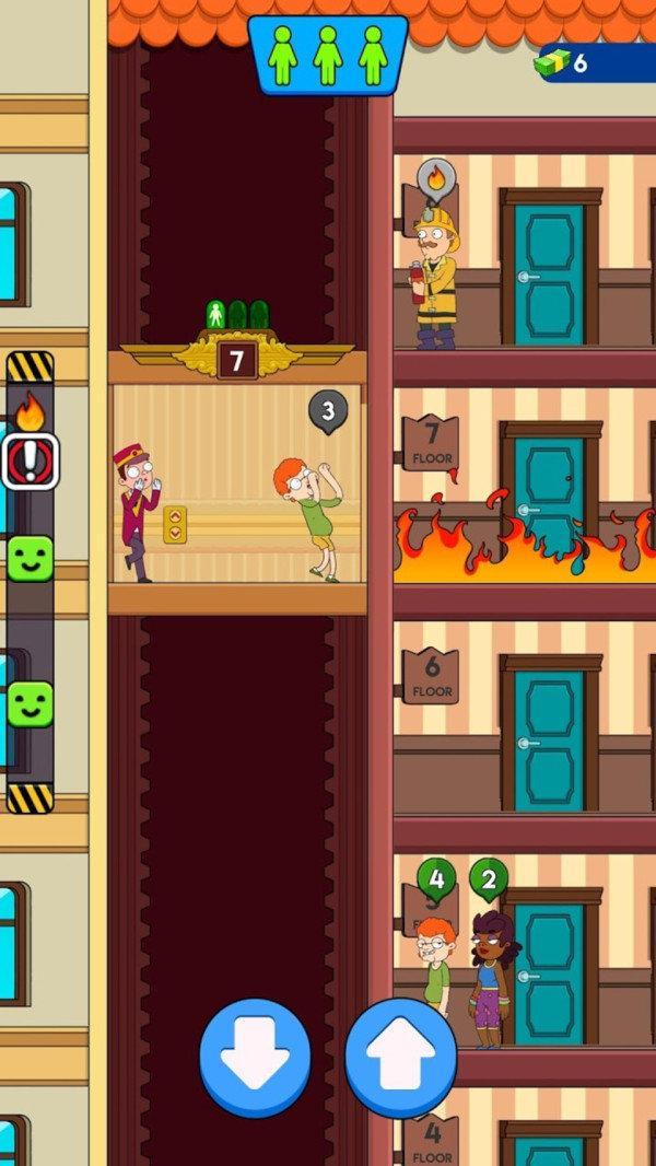 4、用许多可喜欢的卡通图像创建不要同的电梯环境,然后安全通过。