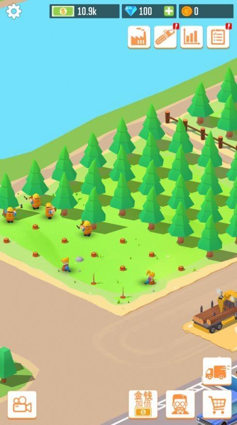 1.为了可以够能持续性地采伐树木,您要雇佣植树工来种植森林!购买更多林地;