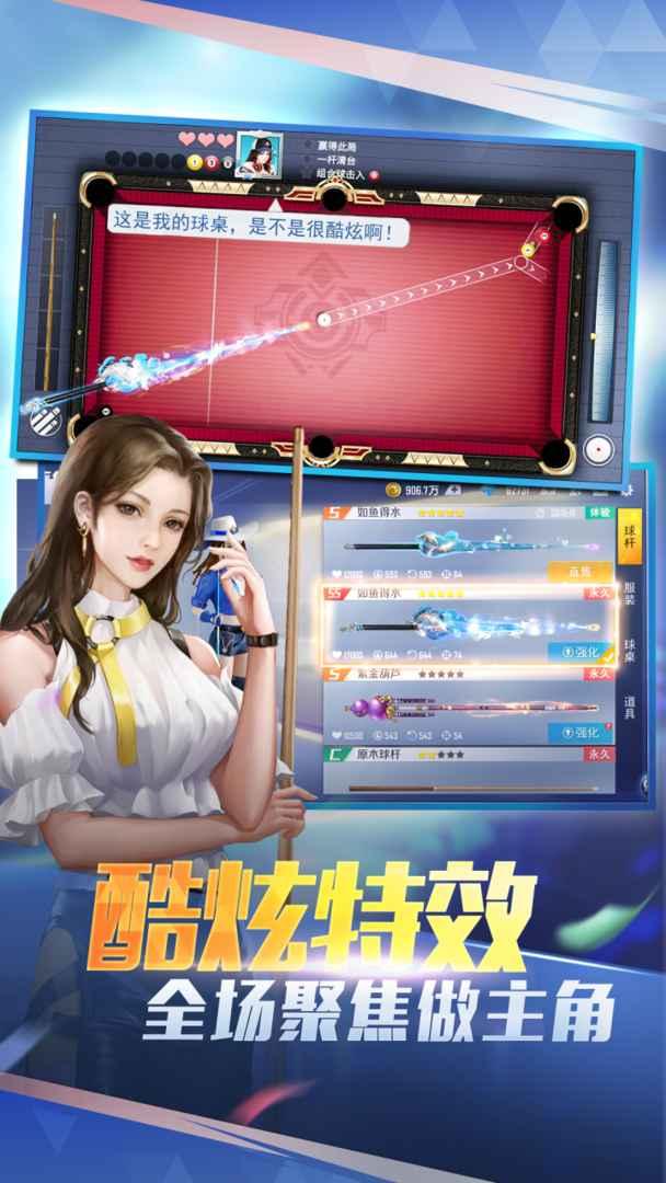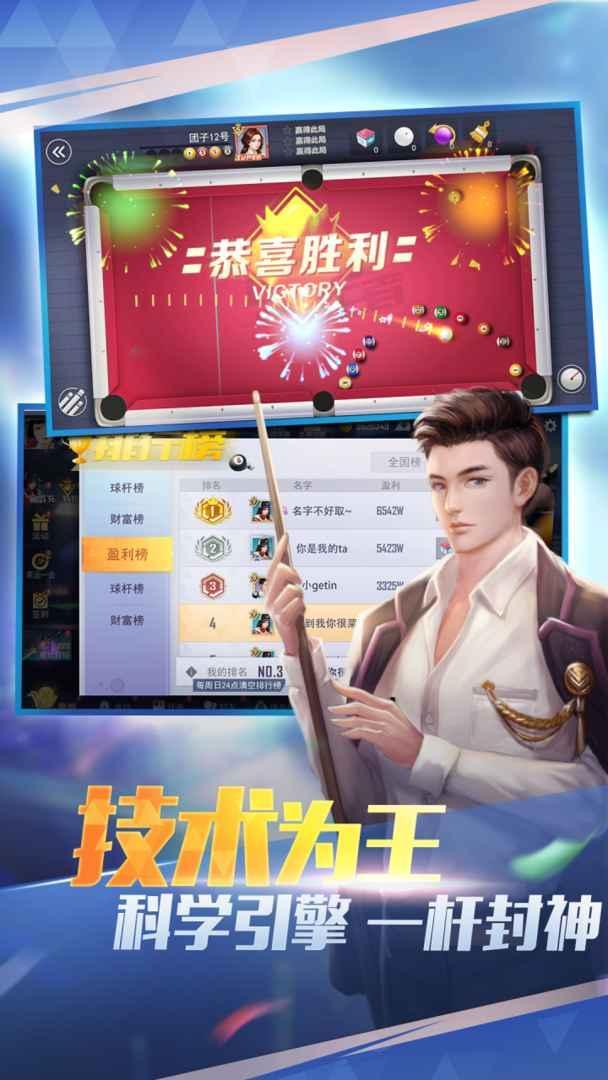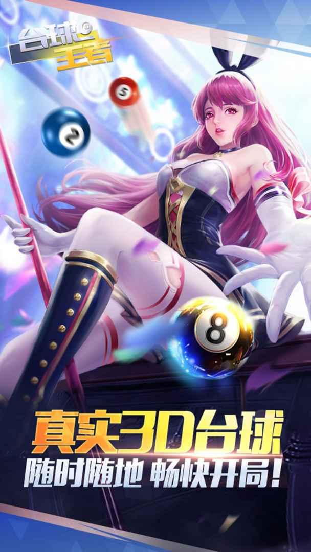 《台球王者》是一款3D超拟真正时对战台球游戏。在手游里,您能体验经典的8球9球斯诺克玩法,和全球玩家同场竞技;超强引擎还原真正物理运动,让您花式炫技一杆封神;更有酷炫3D特效搭配百变球杆,打造最极致沉醉的台球体验,空心入袋.一发入魂!