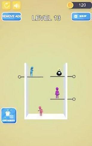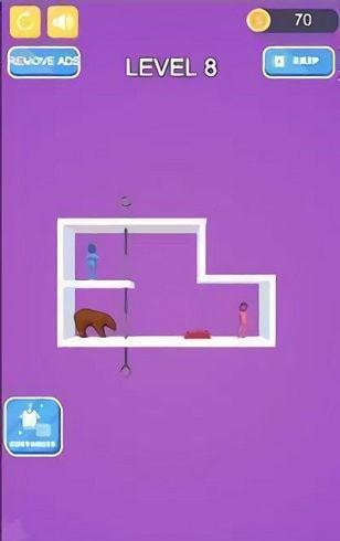 您将通过解决图钉难题来帮助男孩使女孩摆脱惊险,拉大头针并完成任务