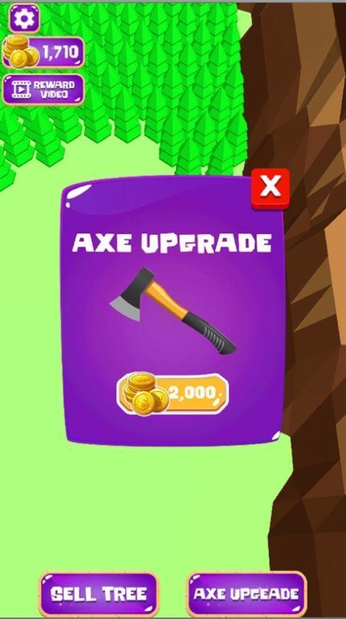 2.简单手指挥动砍伐前方的树木,不要断砍倒树木得到对应的奖励,升级你的斧头提升砍伐速度。