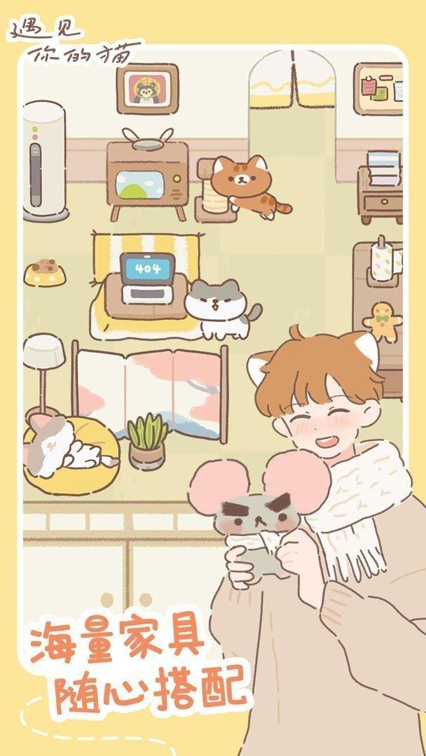 1.卡通激萌的画面风格,手游的画风十分独特与吸引人,领养一只可喜欢的猫咪陪伴你生活。