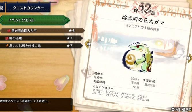 1、卡普空官方推送首个活动任务熔岩洞的巨蛙,HR4以上的猎人可参加此次活动,完成任务后能得到特殊肢体动作忍术。