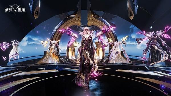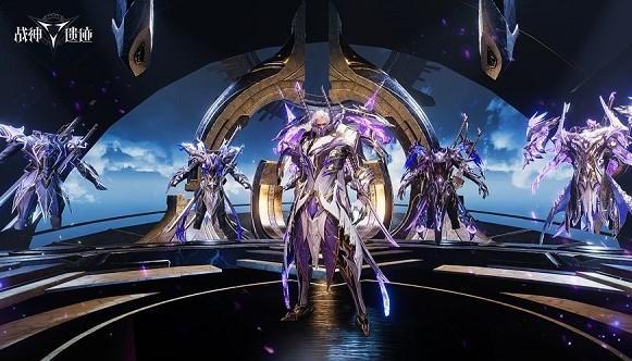 4.百种远古天神套装散落在宇宙各处,融入机甲元素的肩甲与武器涌动流光质感,附带绚丽特效。