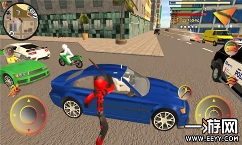 左侧挪移.加速,右侧绳索,攻击(跳跃),跳跃,右上侧的武器更换以及血量.经验的显示都实时更新,一览无遗,凭借着大家自由的玩法,和其他帮派的人物进行交火,期间杀人可以够得到经验,杀多了会产生星级,警察与其他附近角色会特别照应你对你开始火热的进攻,而如何存活,如何将其他人物击杀则是你所要完成的任务。