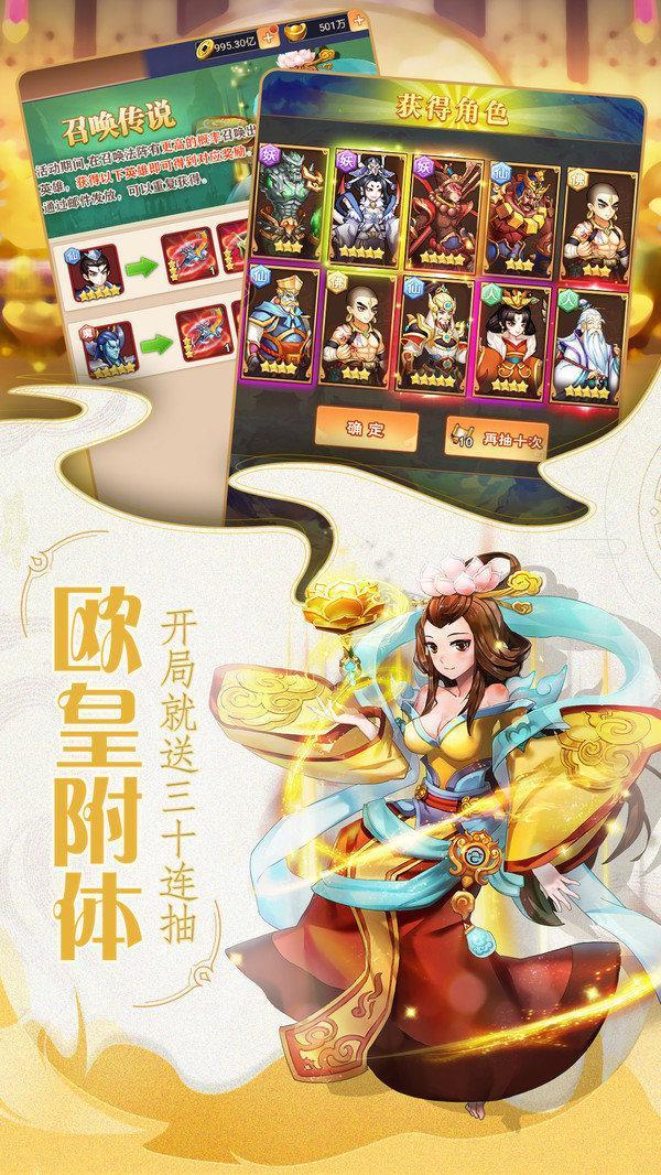 概率公示,拒绝隐藏机制,你想需要什么神仙卡牌,统统都可以抽到!福利极度良心,玩家能通关日常主线.在线挂机.达成成就.抢红包.一键完成任务等方式领取超高额元宝,第二天保底全员五星神仙上阵!来感觉请神的快感吧!