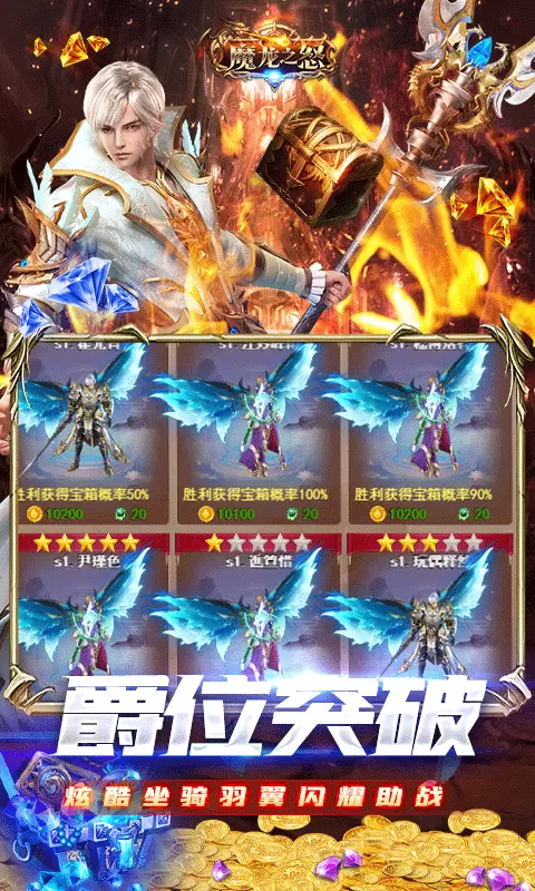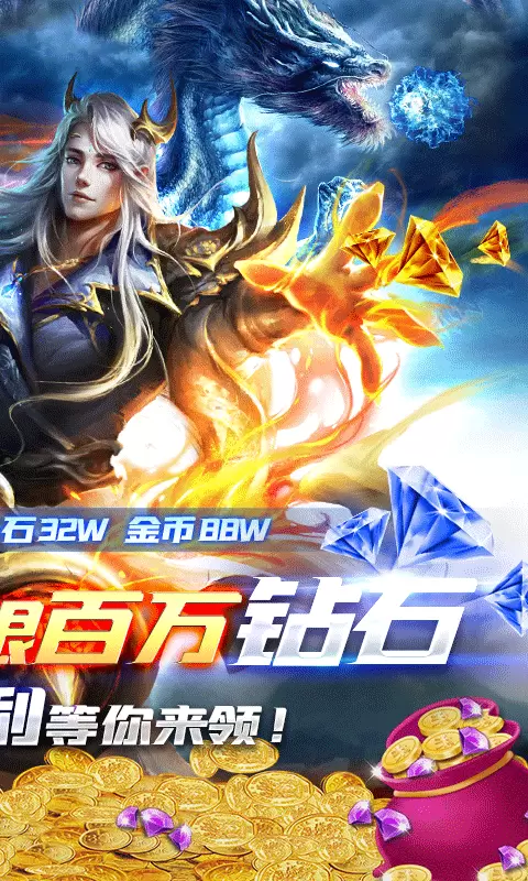 1.上线送满级VIP22,钻石*328000,金钱*88、88W,开局助力魔龙之怒!