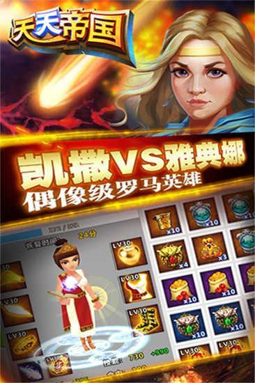 棋牌策略 / 2021.06.06 更新天天帝国内购破解版是由上一款策略塔防类手机手游。在该款手游当里,玩家将亲手统领你的军团再这样一片沙场里打造出属于你自己的帝国,手游的玩法上还是相当的丰富的,都环绕着盟友.英雄.副本.兵种.布防玩法作为核心玩法而开始的,带给玩家一种最真正的罗马古战场手游体验。