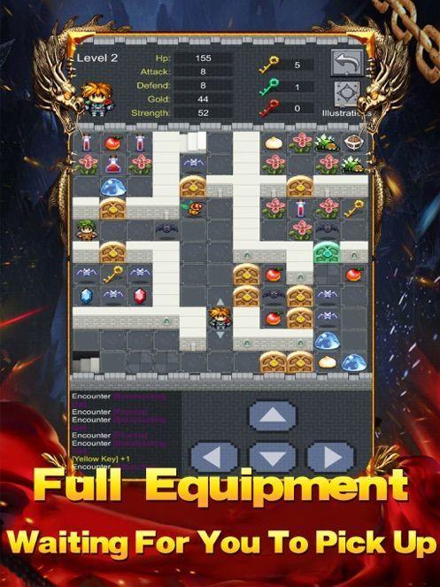 2.每层地图里有着怪物与钥匙。后期的楼层还有着武器,隐藏机关与NPC,能提升属性。