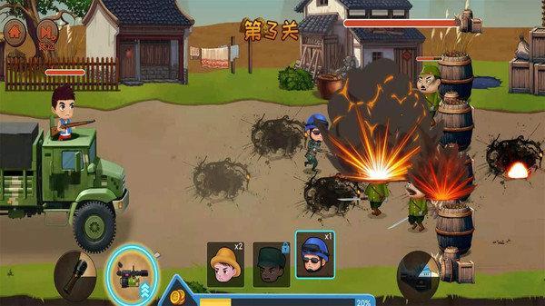 2.q版的手游画风,生动还原了,我方红军子弟兵和鬼子进行输死搏斗的英勇事迹。多种多样的地图和武器带你回到那个抗战时代!