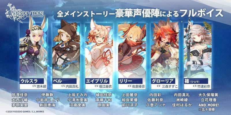 阿澄佳奈.伊藤静.上坂すみれ.植田佳奈.上田丽奈.内田彩.内田真礼.大久保瑠美.大西沙织.小岩井ことり.小清水亜美.斎藤千与.相良茉优.佐仓绫音.佐藤利奈.洲崎绫.竹达彩奈.立花理香.茅原実中.新田恵海.沼仓喜欢美.原由実.堀江由衣.前川凉子.三森すずこ.八巻アンナ.悠木碧.佳村はるか.等、