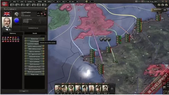 更多的焦点会放在备战上面,包括你的工业产出,军事政策,和装备更新;