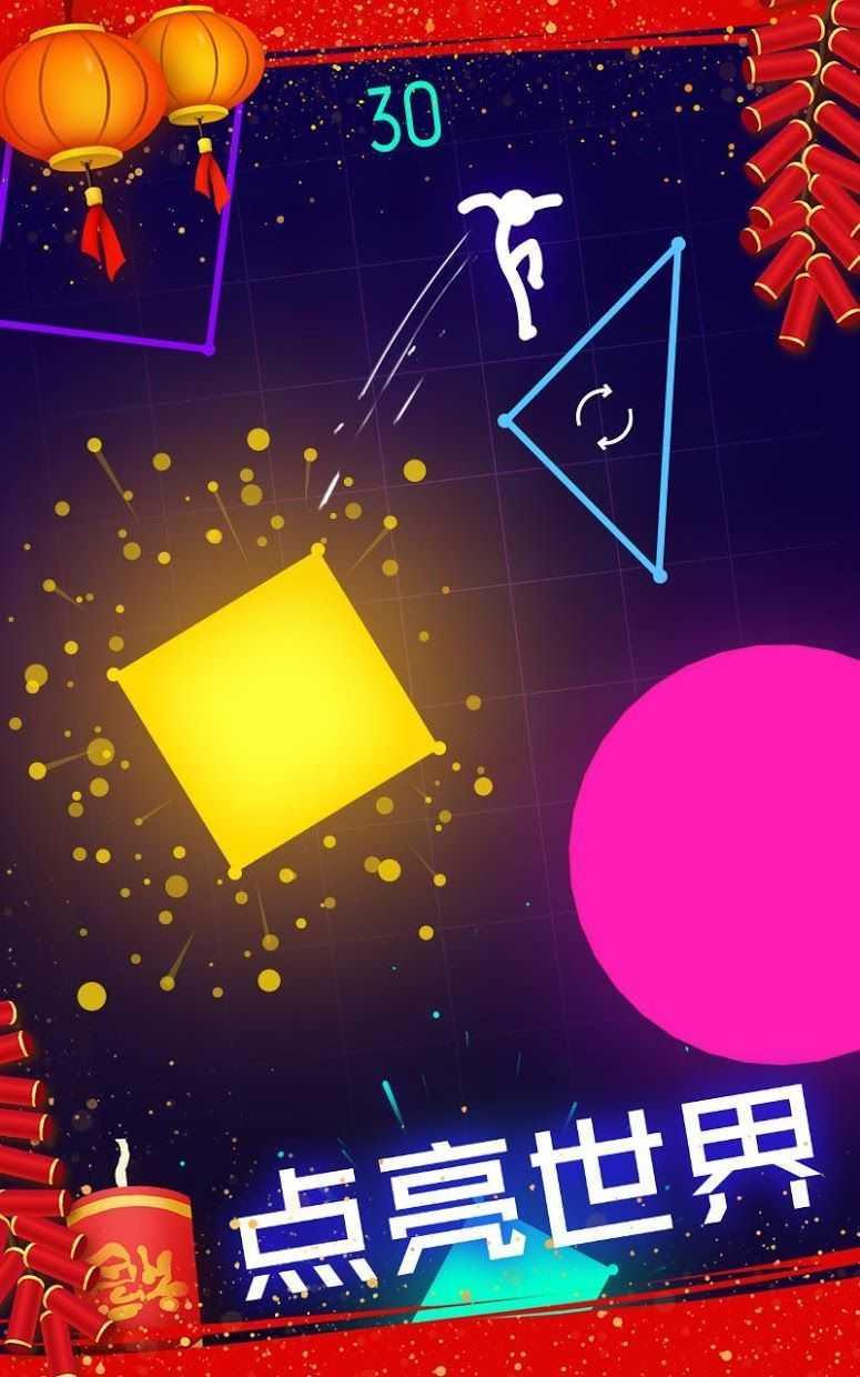 2.手游规则很简单,只需要火柴人成功的着陆到一个方块上面,这个方块就会被点亮,然后继续想下一款跳跃。