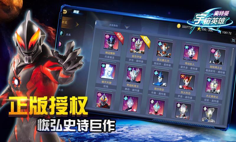 奥特曼3D动作游戏《奥特曼宇宙英雄》震撼来袭!国民级ARPG大作!奥特曼宇宙史诗级还原,经典.传说奥特曼齐登场,告辞枯燥卡牌平面对战,全3D特效酷炫画面体验华丽战斗!一起维护全宇宙的与平!快来集结你的宇宙英雄战队,迎战宇宙怪兽军团。