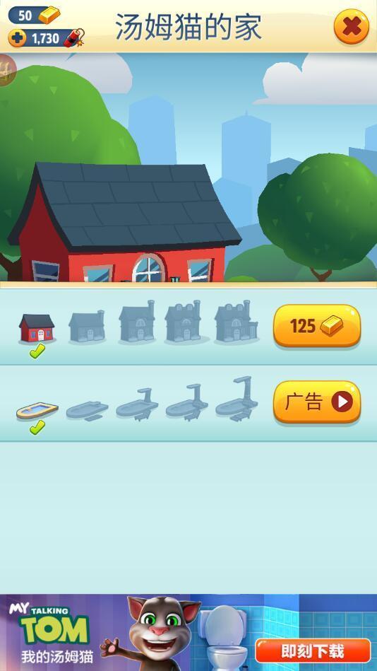 3.建筑奇特的家园用你收集的金条为会说话的汤姆猫家族建筑家园!