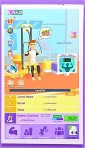 3、根据不要一样的锻炼新项目让游戏玩家的总体看上去很非常好,去随意挑战运动健身的的器械,一步步提升 体脂。