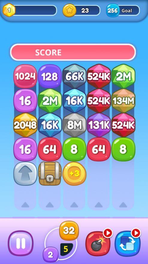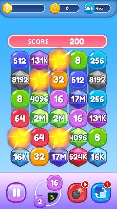 2.相同数字的方块相撞,会合成更大数字的方块。