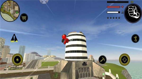 左侧挪移.加速,右侧绳索,攻击(跳跃),跳跃,右上侧的武器更换以及血量.经验的显示都实时更新,一览无遗,凭借着大家自由的玩法,和其他帮派的人物进行交火,期间杀人可以够得到经验,杀多了会产生星级,警察与其他附近角色会特别照应你对你开始火热的进攻,而如何存活,如何将其他人物击杀则是你所要完成的任务。